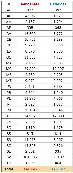 A tabela abaixo mostra o quantitativo de contribuintes que solicitaram opção pelo Simples Nacional, por Estado, até o momento:
